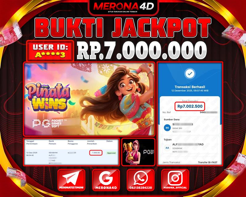 Selamat Kepada Member MERONA4D A*****3 Telah Jackpot Di PINATA WINS