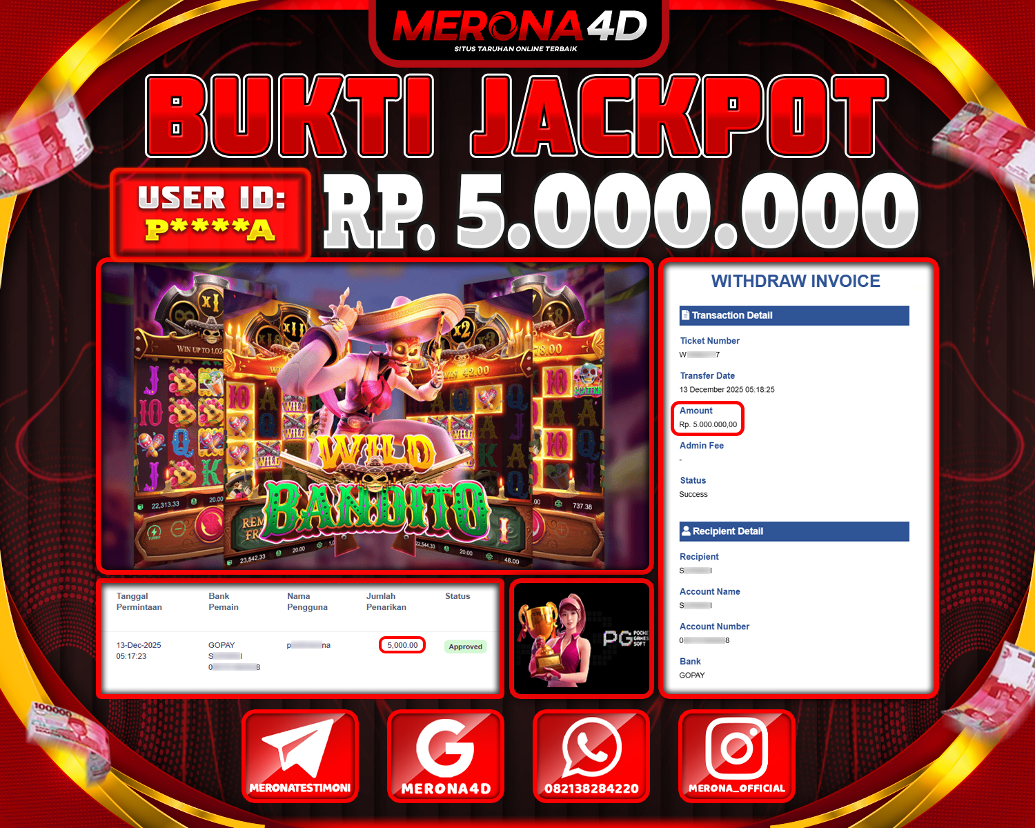 Selamat Kepada Member MERONA4D P****A Telah Jackpot Di WILD BANDITO