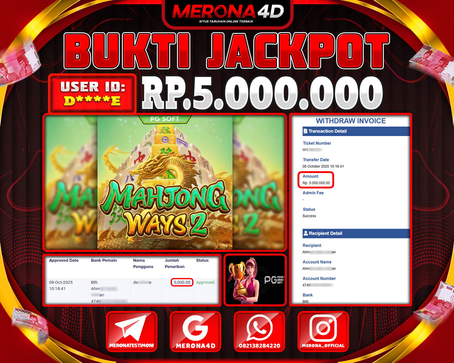 Selamat Kepada Member MERONA4D Dβ­‘οΏ½***οΏ½β­‘E Telah Jackpot Di MAHJONG WAYS 2