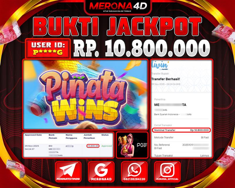 Selamat Kepada Member MERONA4D P*****G Telah Jackpot Di PINATA WINS