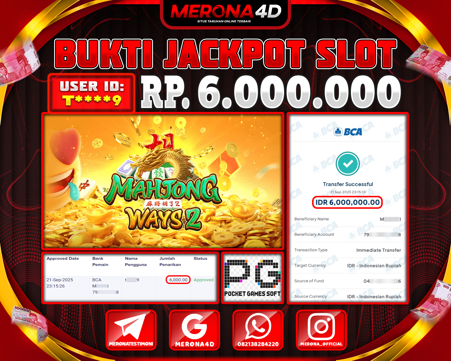 Selamat Kepada Member MERONA4D T****9 Telah Jackpot Di MAHJONG WAYS 2