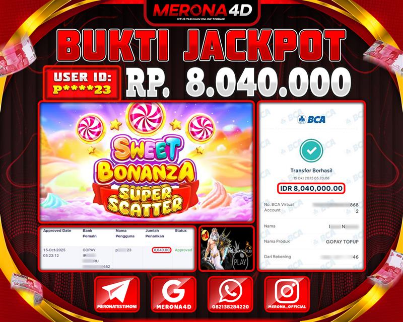 Selamat Kepada Member MERONA4D F*****23 Telah Jackpot Di SWEET BONANZA SUPER SCATTER