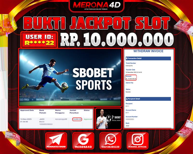 Selamat Kepada Member MERONA4D R*****22 Telah Jackpot Di SBOSPORTS