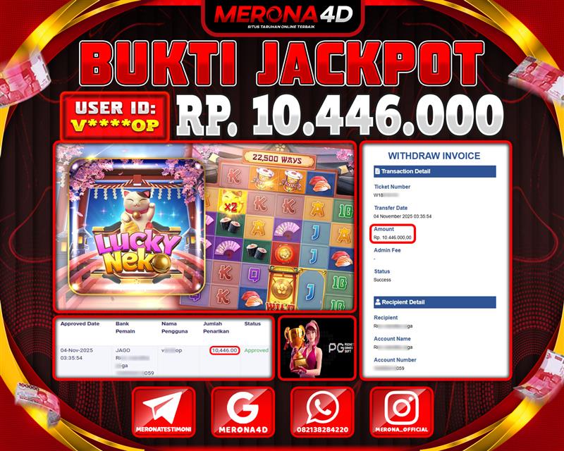 Selamat Kepada Member MERONA4D V*****OP Telah Jackpot Di LUCKY NEKO
