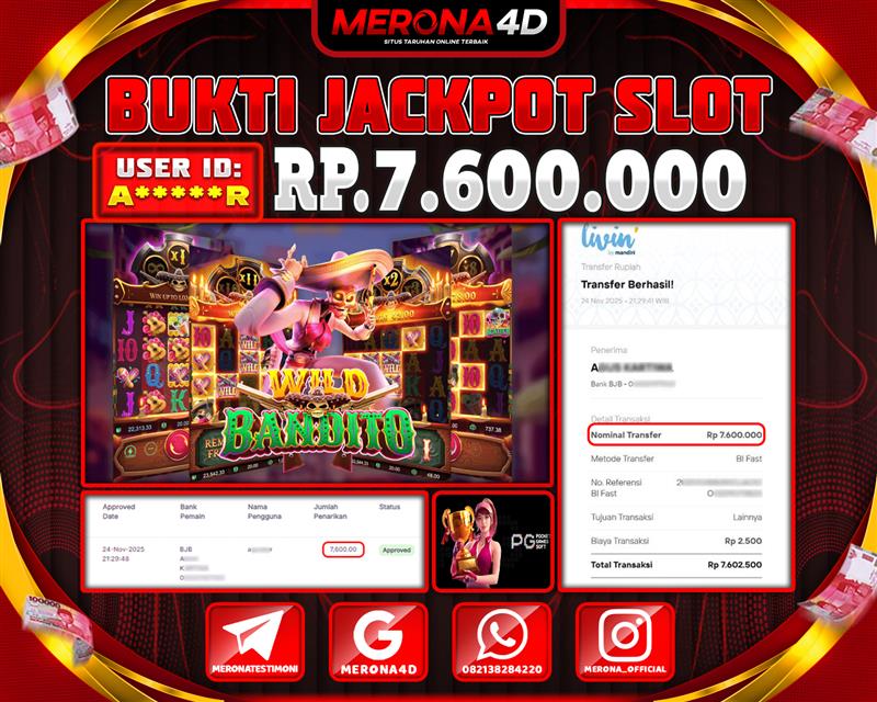 Selamat Kepada Member MERONA4D A*****R Telah Jackpot Di WILD BANDITO
