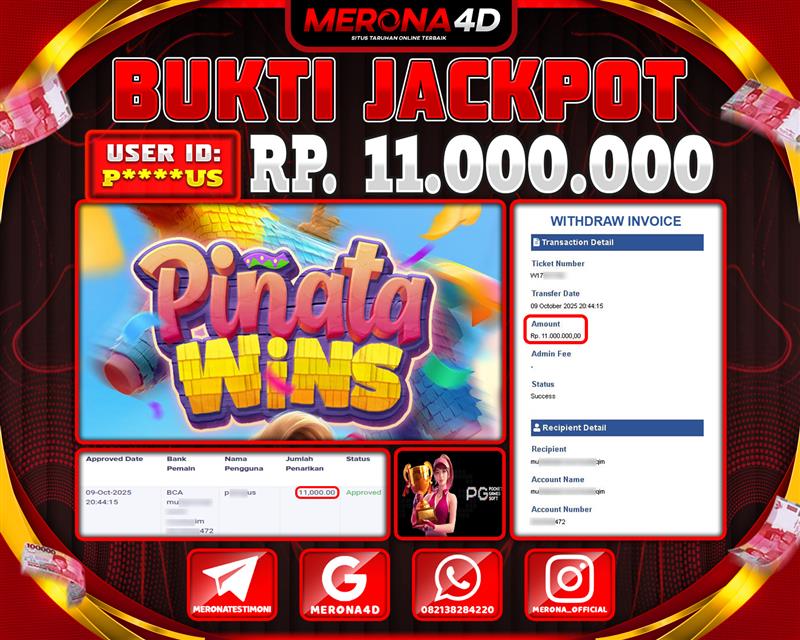 Selamat Kepada Member MERONA4D P*****US Telah Jackpot Di PINATA WINS