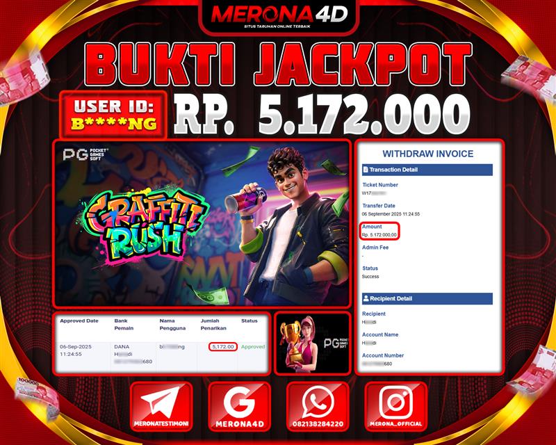 Selamat Kepada Member MERONA4D B*****NG Telah Jackpot Di GRAFFITI RUSH