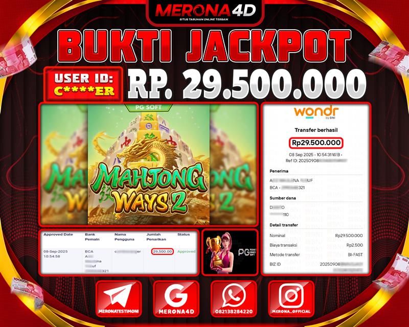 Selamat Kepada Member MERONA4D C*****ER Telah Jackpot Di MAHJONG WAYS 2