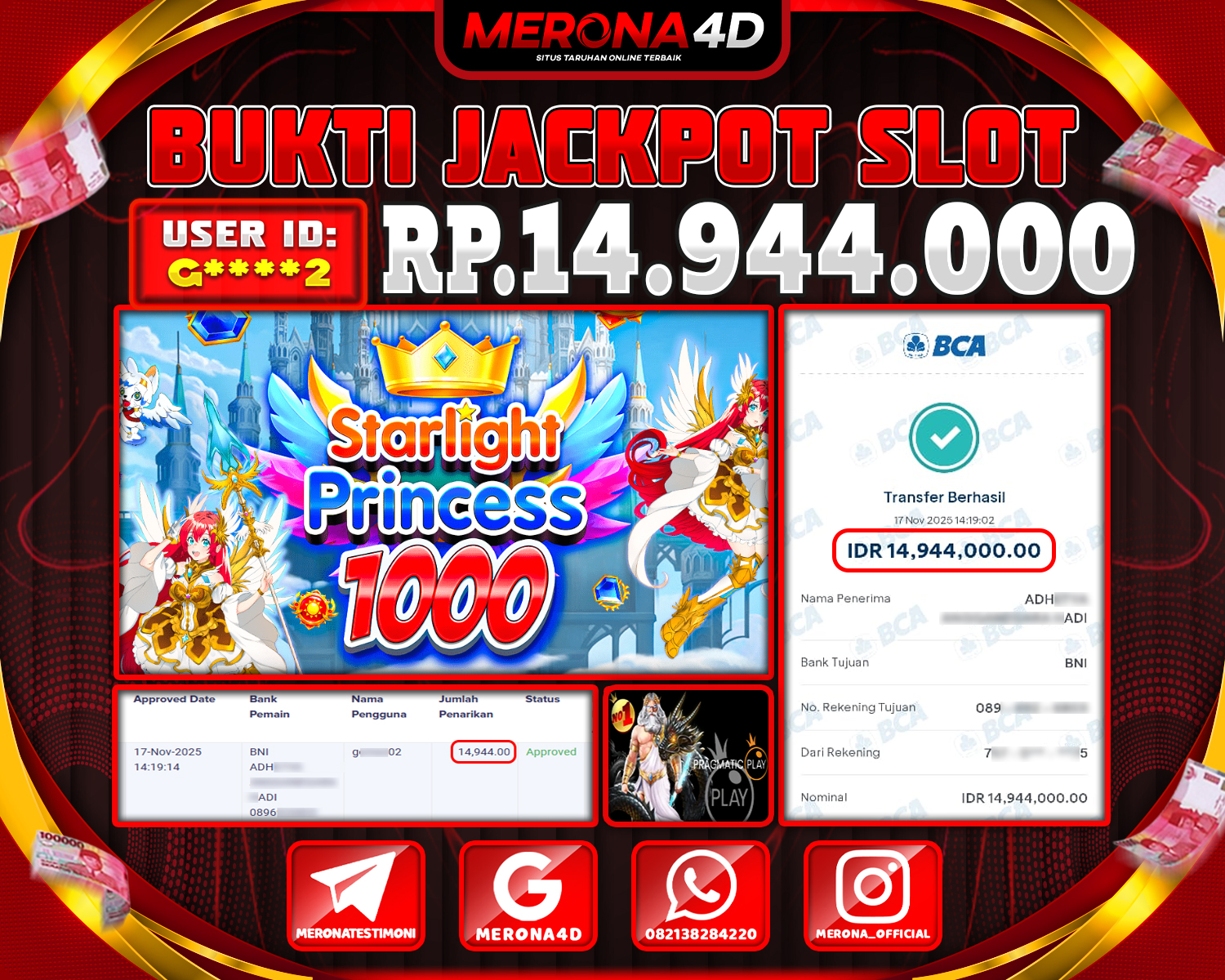 Selamat Kepada Member MERONA4D M*****01 Telah Jackpot Di STARLIGHT PRINCESS