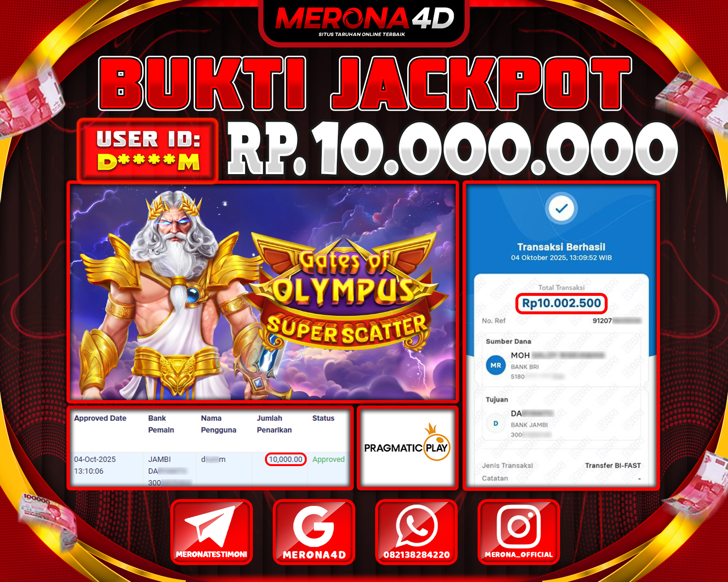 Selamat Kepada Member MERONA4D D**** Telah Jackpot Di GATES OF OLYMPUS SUPER SCATTER