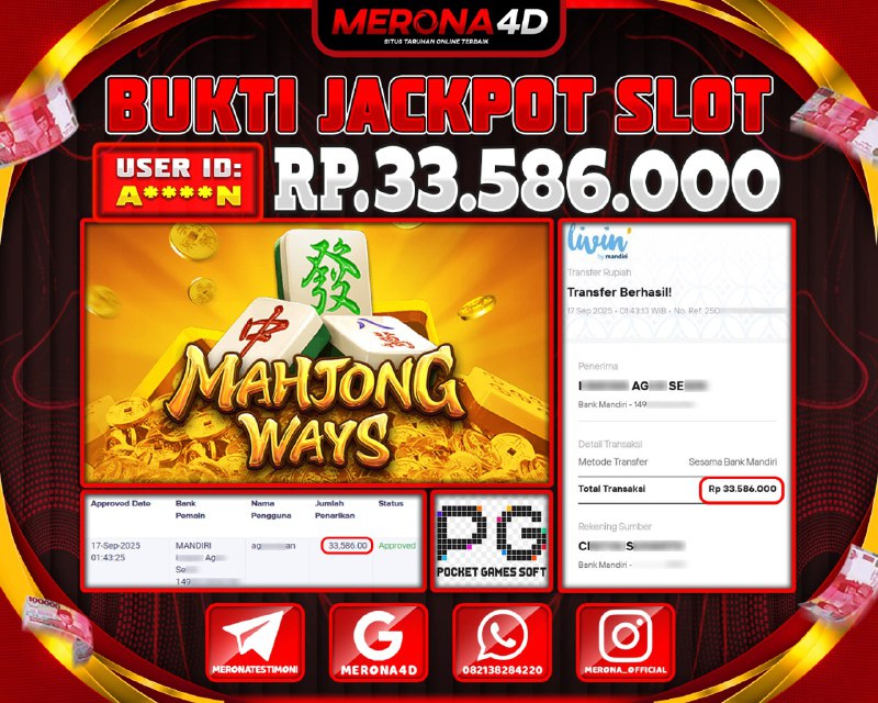 Selamat Kepada Member MERONA4D Aβ­‘οΏ½***οΏ½β­‘N Telah Jackpot Di MAHJONG WAYS