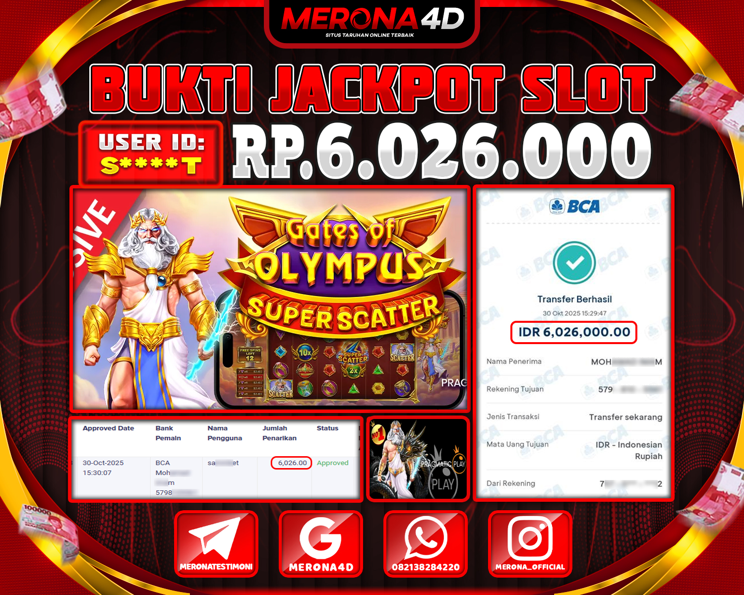 Selamat Kepada Member MERONA4D Sβ­‘οΏ½***οΏ½β­‘T Telah Jackpot Di GATES OF OLYMPUS SUPER SCATTER