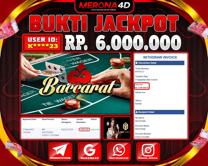 Selamat Kepada Member MERONA4D K****3 Telah Jackpot Di BACCARAT