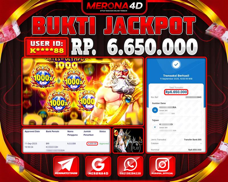 Selamat Kepada Member MERONA4D K*****88 Telah Jackpot Di : GATES OF OLYMPUS 1000