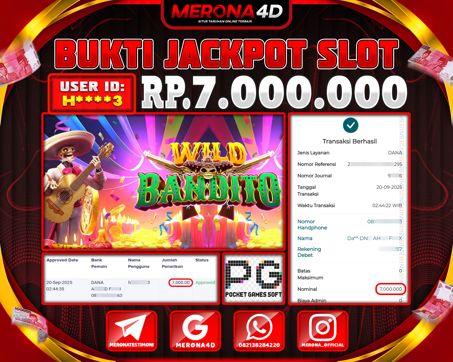 Selamat Kepada Member MERONA4D H****3 Telah Jackpot Di WILD BANDITO