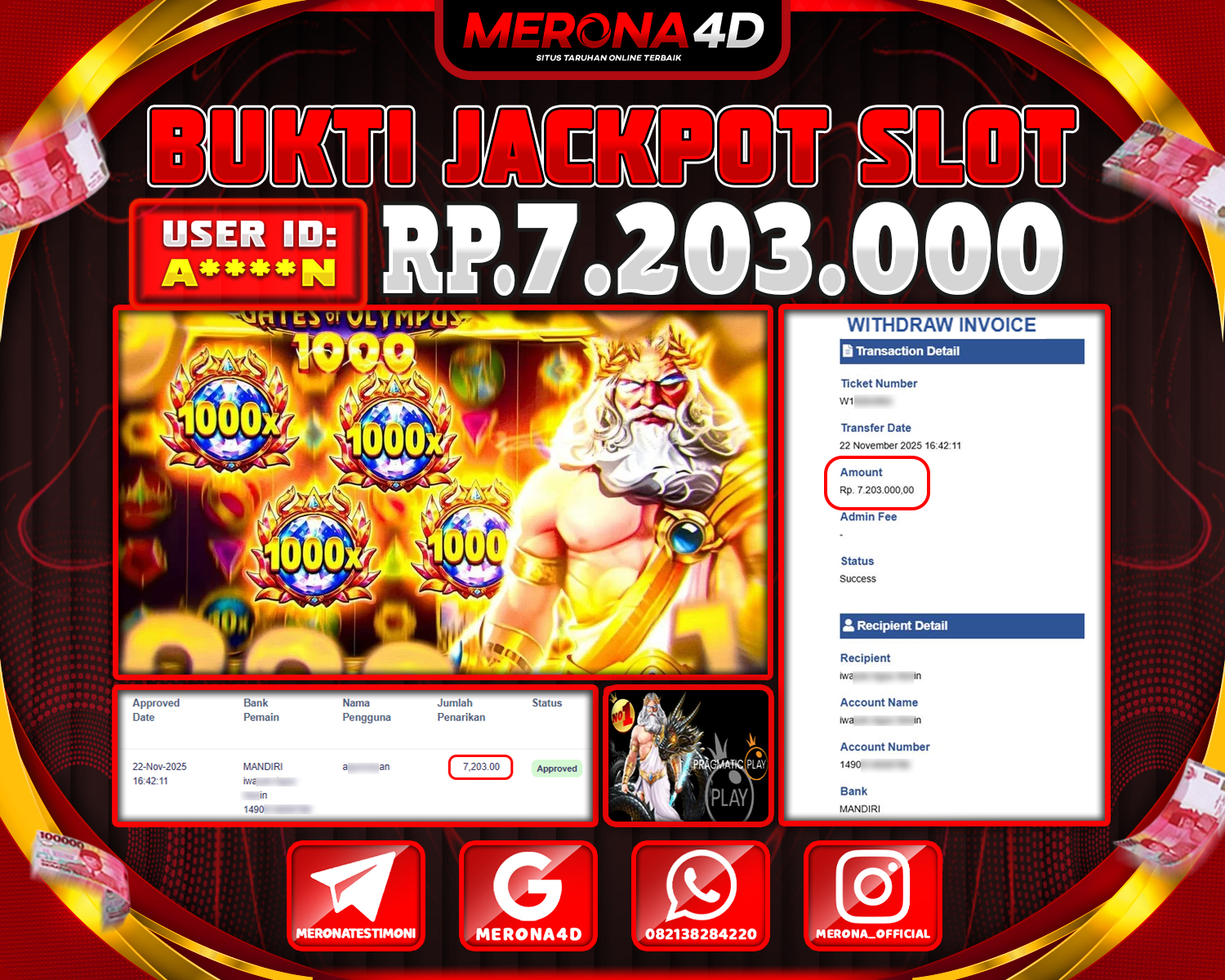 Selamat Kepada Member MERONA4D A****N Telah Jackpot Di GATES OF OLYMPUS 1000