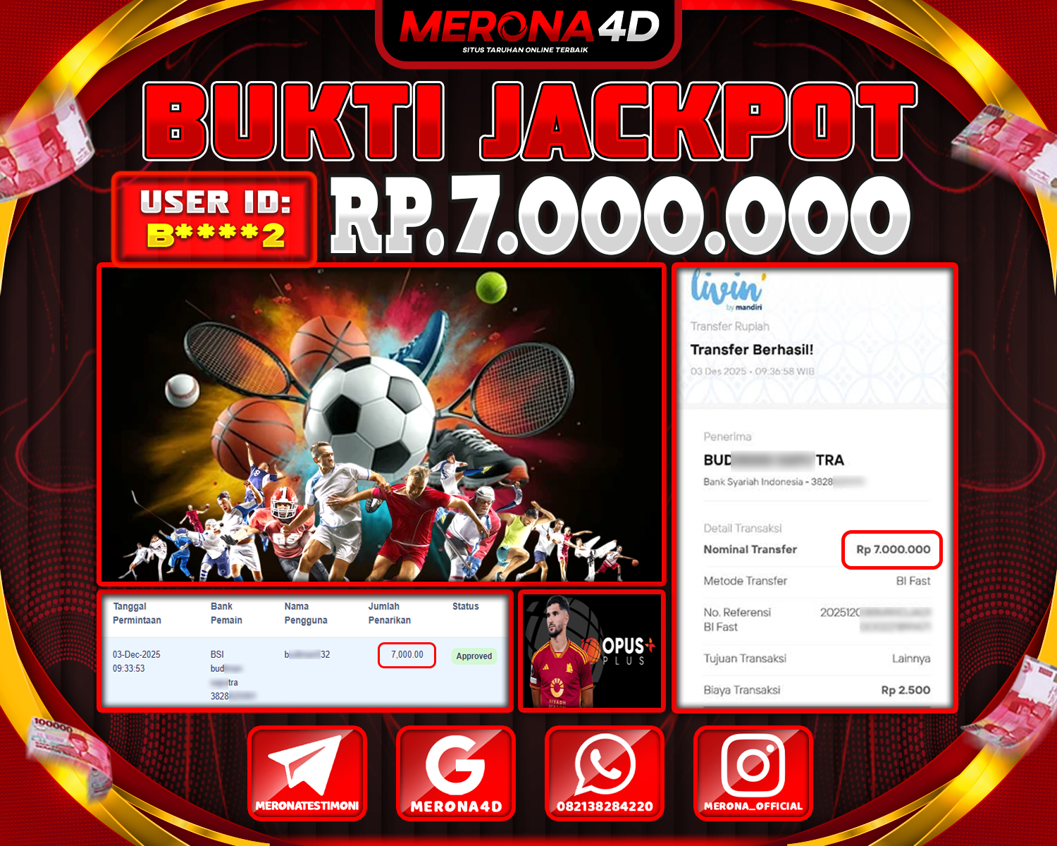 Selamat Kepada Member MERONA4D B****2 Telah Jackpot Di SPORTS BOOKS