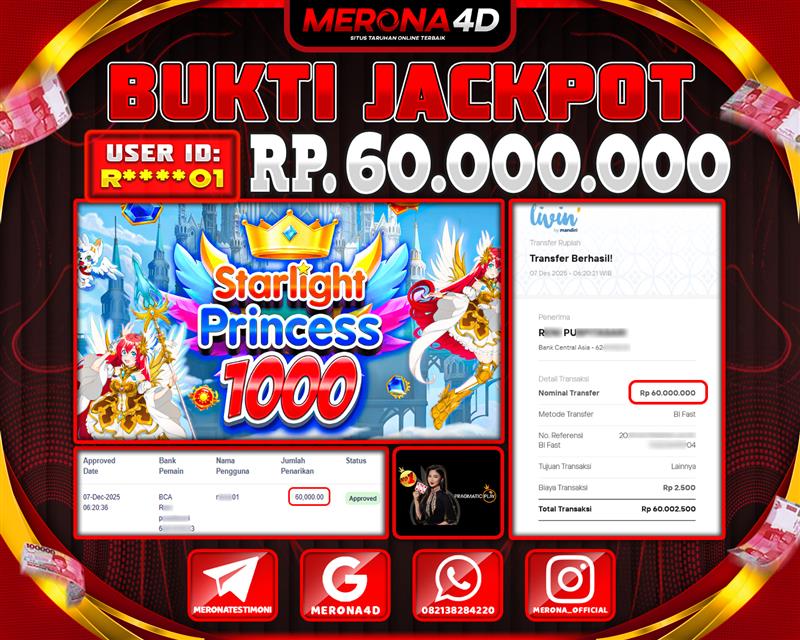 Selamat Kepada Member MERONA4D R*****01 Telah Jackpot Di STARLIGHT PRINCESS