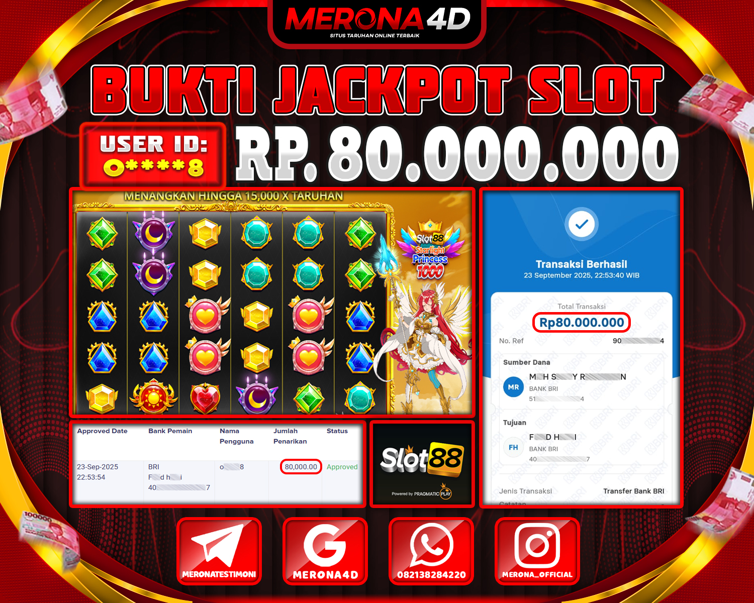Selamat Kepada Member MERONA4D O****8 Telah Jackpot Di SLOT88 STARLIGHT PRINCESS 1000