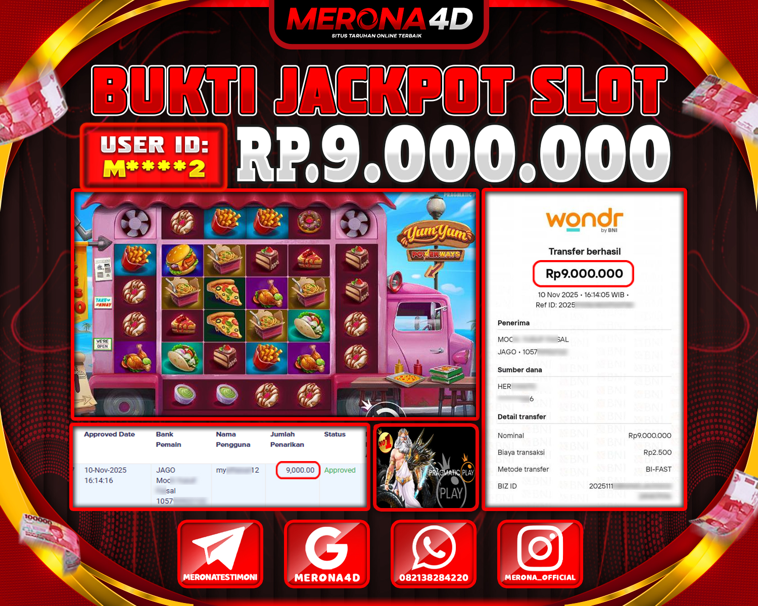Selamat Kepada Member MERONA4D Mβ­‘οΏ½***οΏ½β­‘2 Telah Jackpot Di YUM YUM POWERWAYS