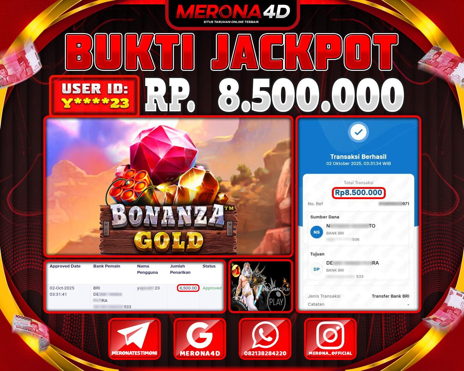 Selamat Kepada Member MERONA4D Y*****23 Telah Jackpot Di BONANZA GOLD