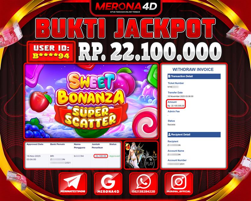Selamat Kepada Member MERONA4D B*****94 Telah Jackpot Di SWEET BONANZA SUPER SCATTER