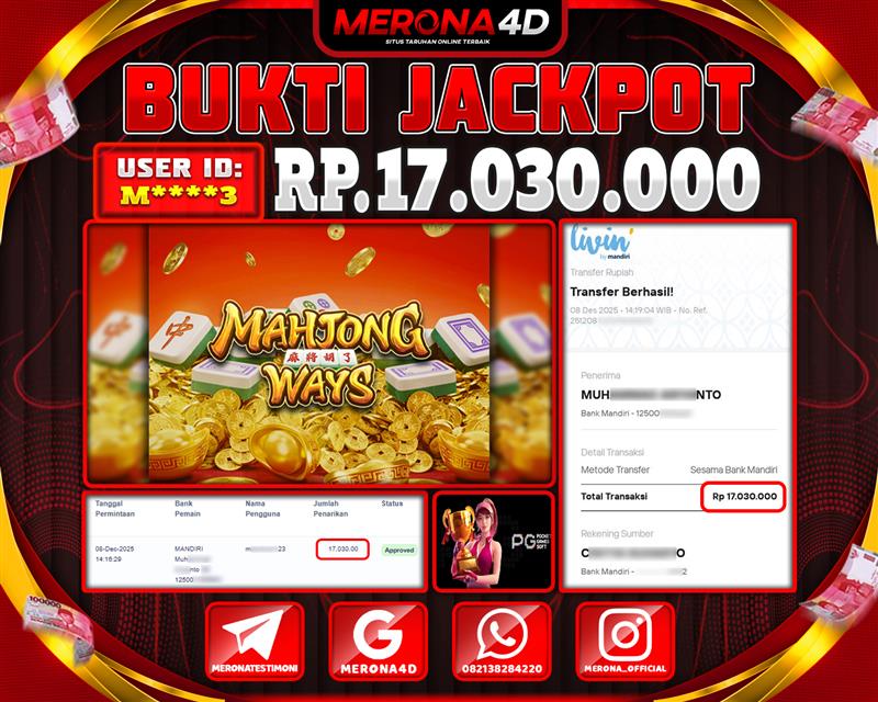 Selamat Kepada Member MERONA4D M*****3 Telah Jackpot Di MAHJONG WAYS