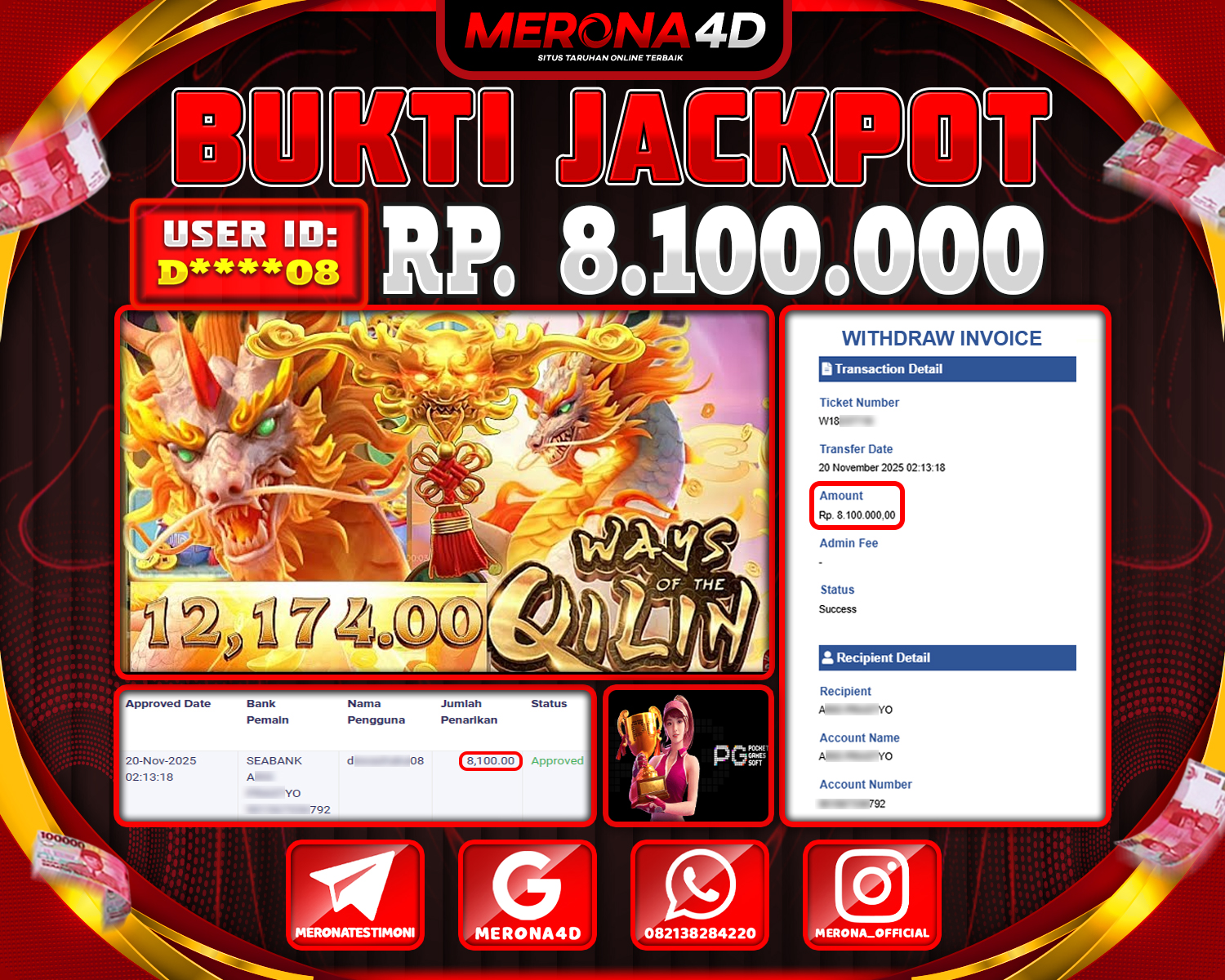 Selamat Kepada Member MERONA4D D*****08 Telah Jackpot Di WAYS OF THE QILIN