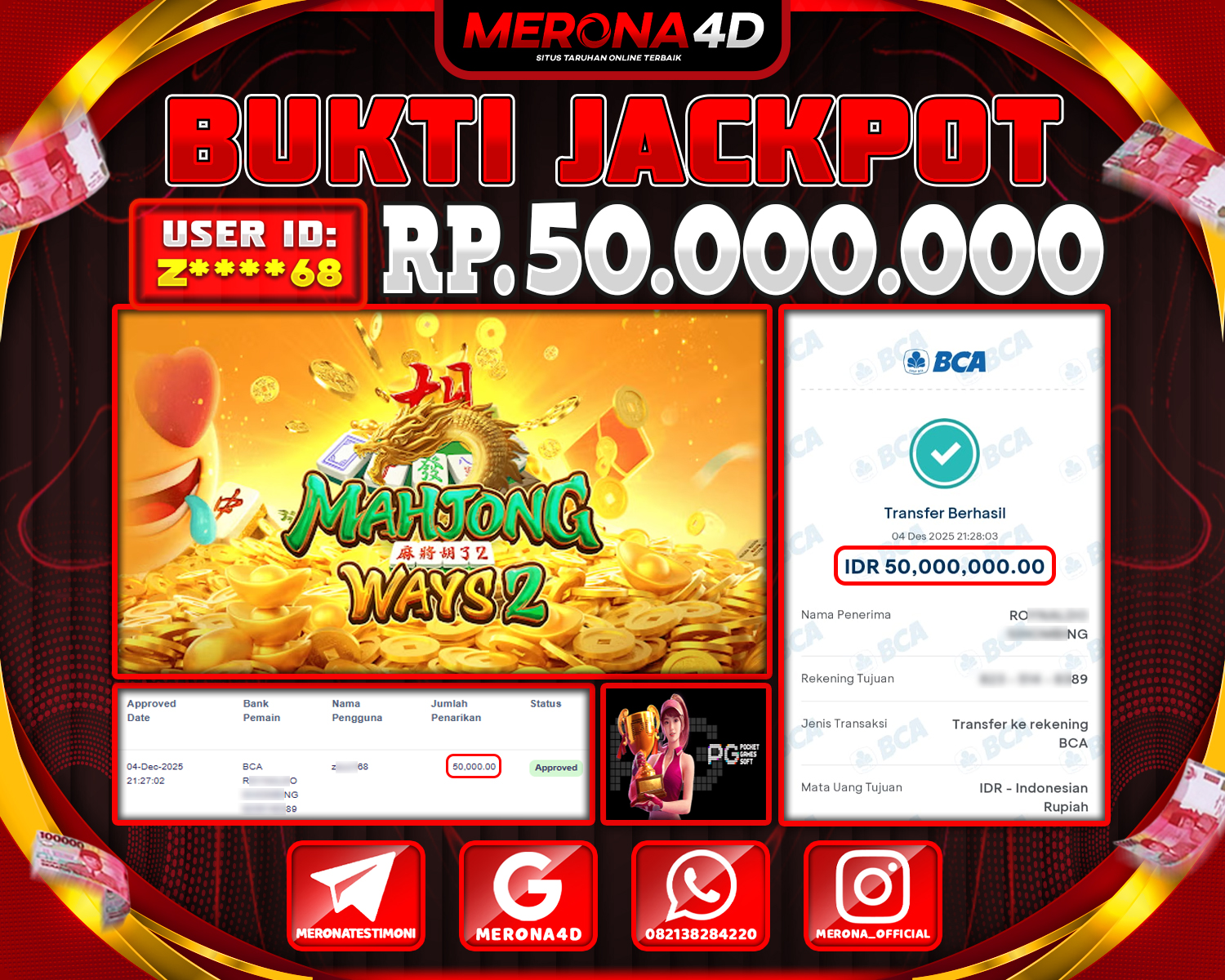 Selamat Kepada Member MERONA4D Z*****68 Telah Jackpot Di MAHJONG WAYS 2