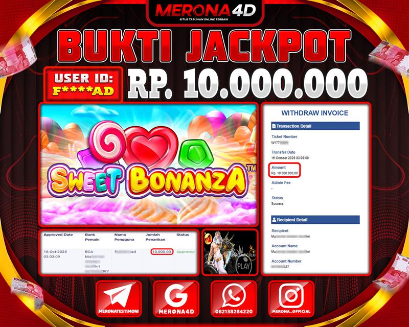 Selamat Kepada Member MERONA4D F*****AD Telah Jackpot Di SWEET BONANZA