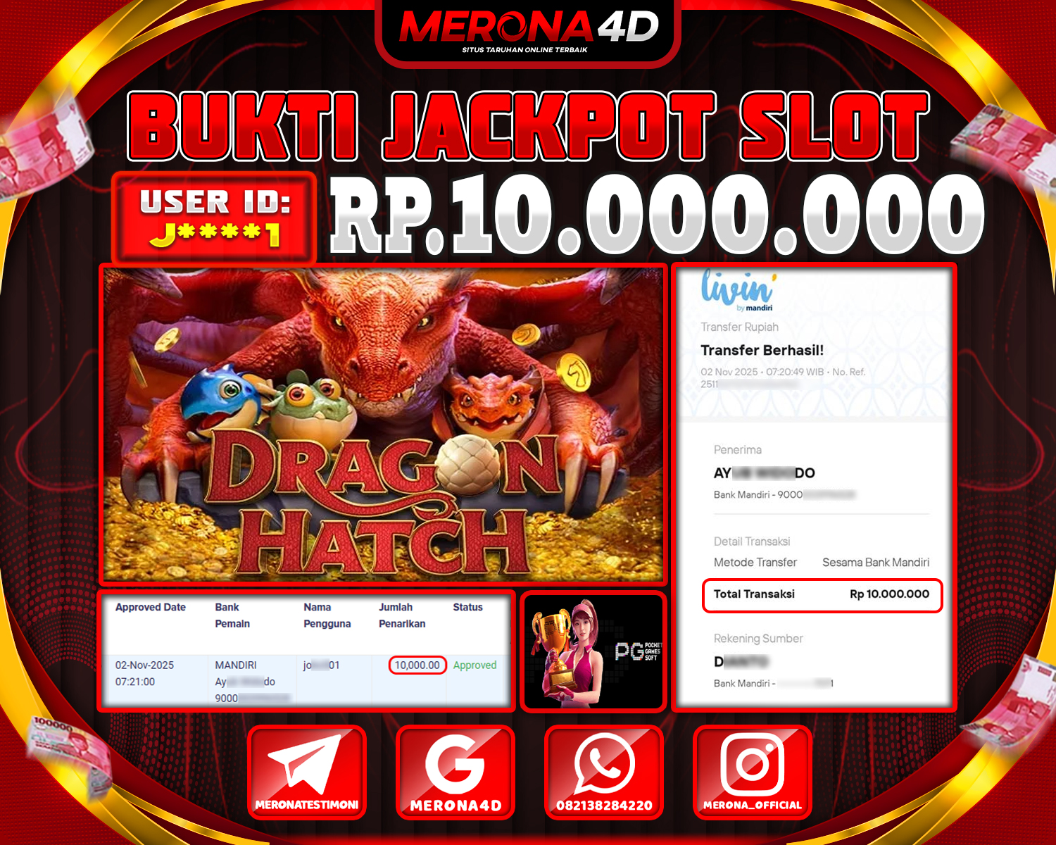 Selamat Kepada Member MERONA4D Jβ­‘οΏ½***οΏ½β­‘1 Telah Jackpot Di DRAGON HATCH 2