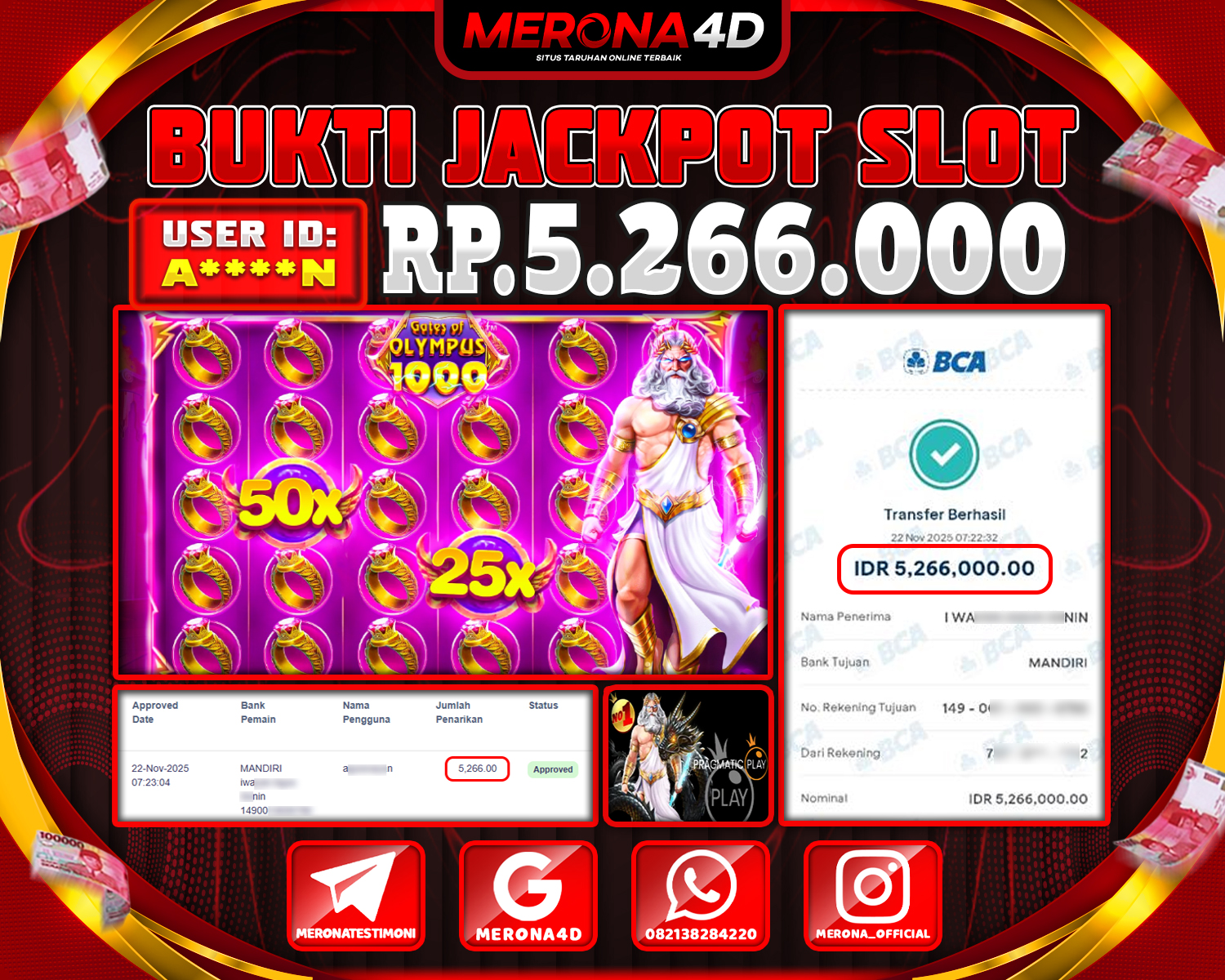 Selamat Kepada Member MERONA4D A****N Telah Jackpot Di GATES OF OLYMPUS 1000
