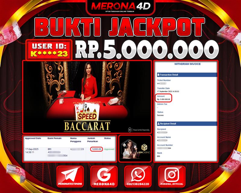 Selamat Kepada Member MERONA4D K*****23 Telah Jackpot Di BACCARAT