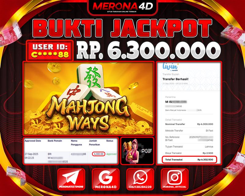 Selamat Kepada Member MERONA4D C*****8 Telah Jackpot Di MAHJONG WAYS