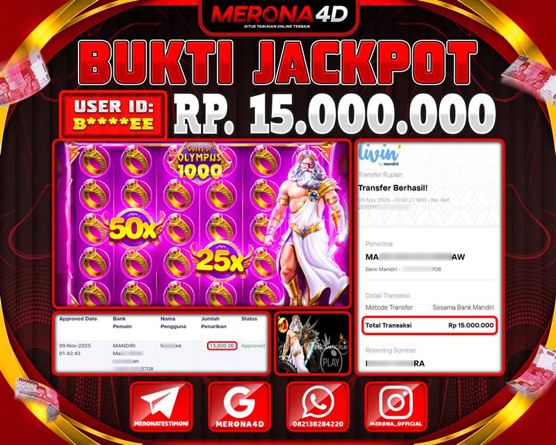 Selamat Kepada Member MERONA4D B*****EE Telah Jackpot Di GATES OF OLYMPUS 1000