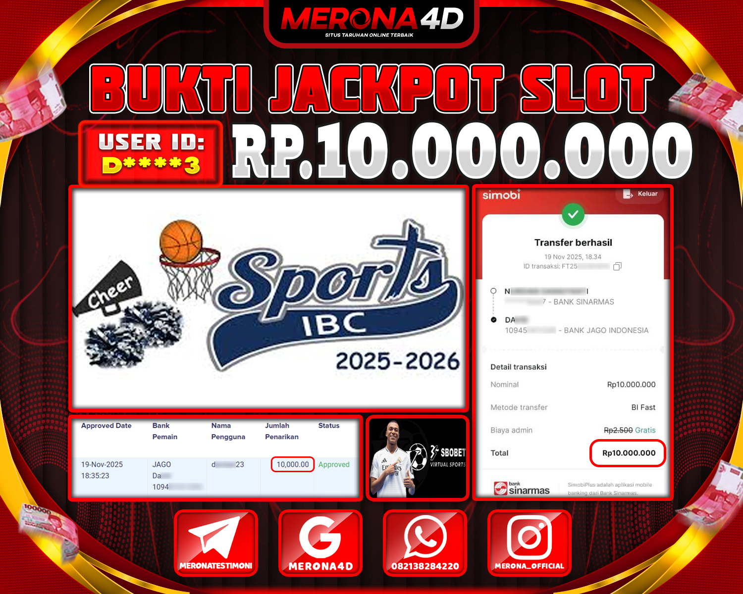Selamat Kepada Member MERONA4D D****3 Telah Jackpot Di IBC SPORTS
