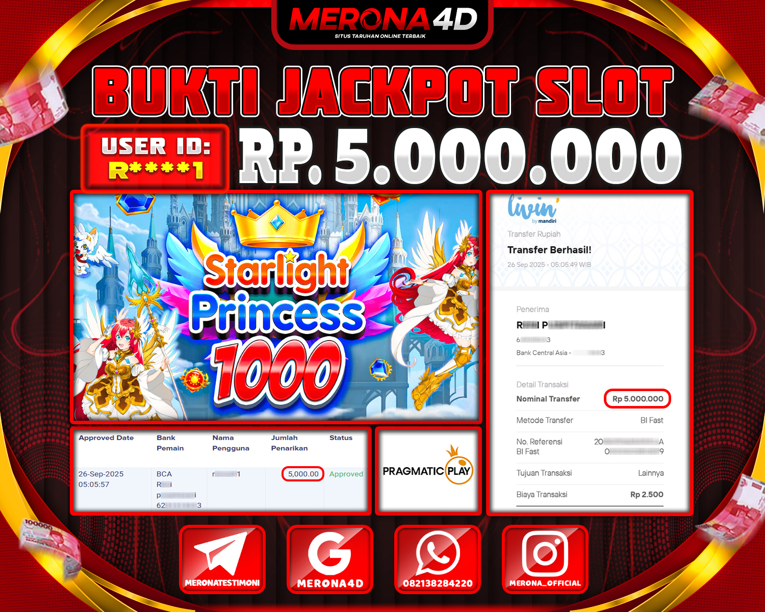Selamat Kepada Member MERONA4D R****1 Telah Jackpot Di STARLIGHT PRINCESS 1000