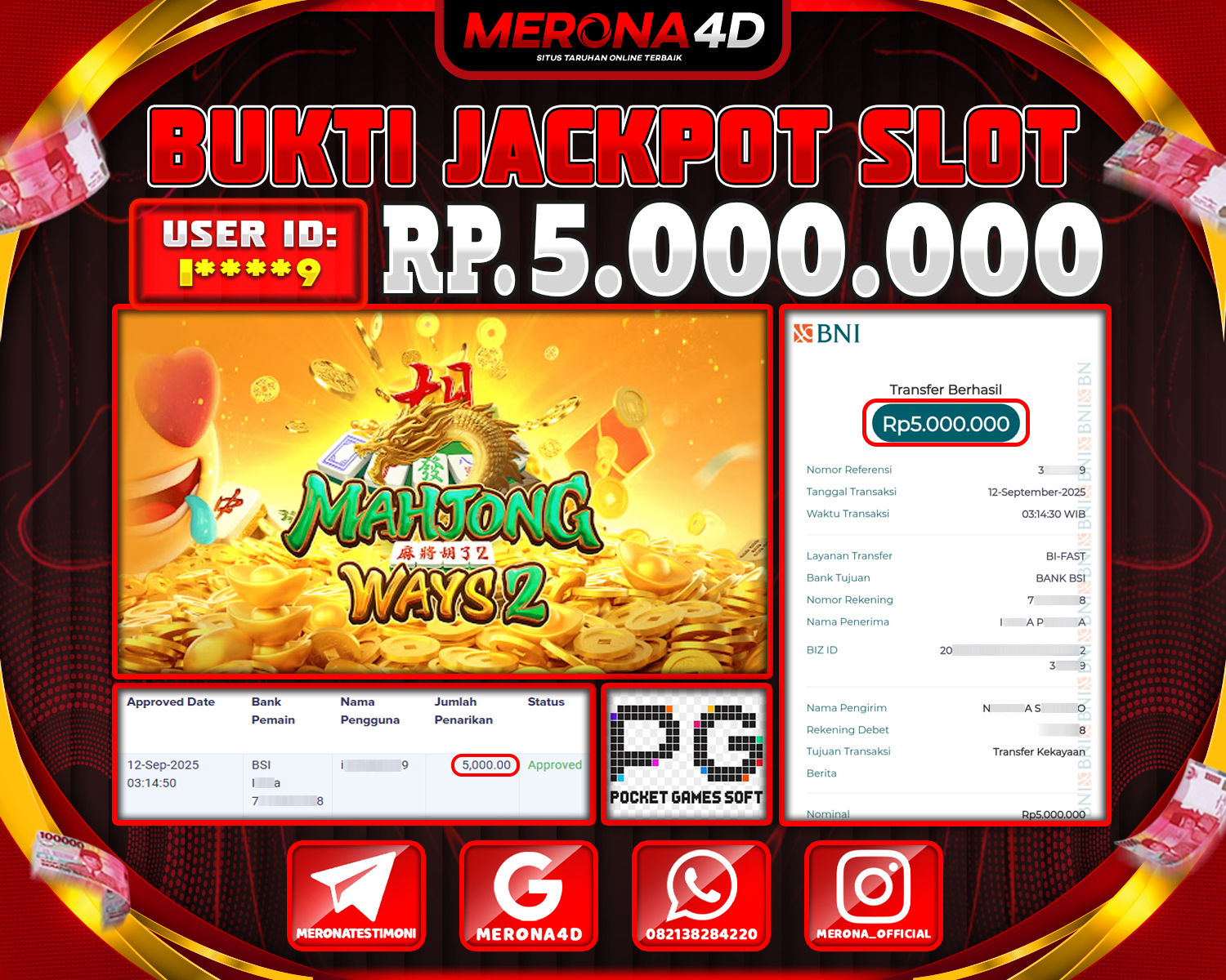 Selamat Kepada Member MERONA4D I****9 Telah Jackpot Di MAHJONG WAYS 2