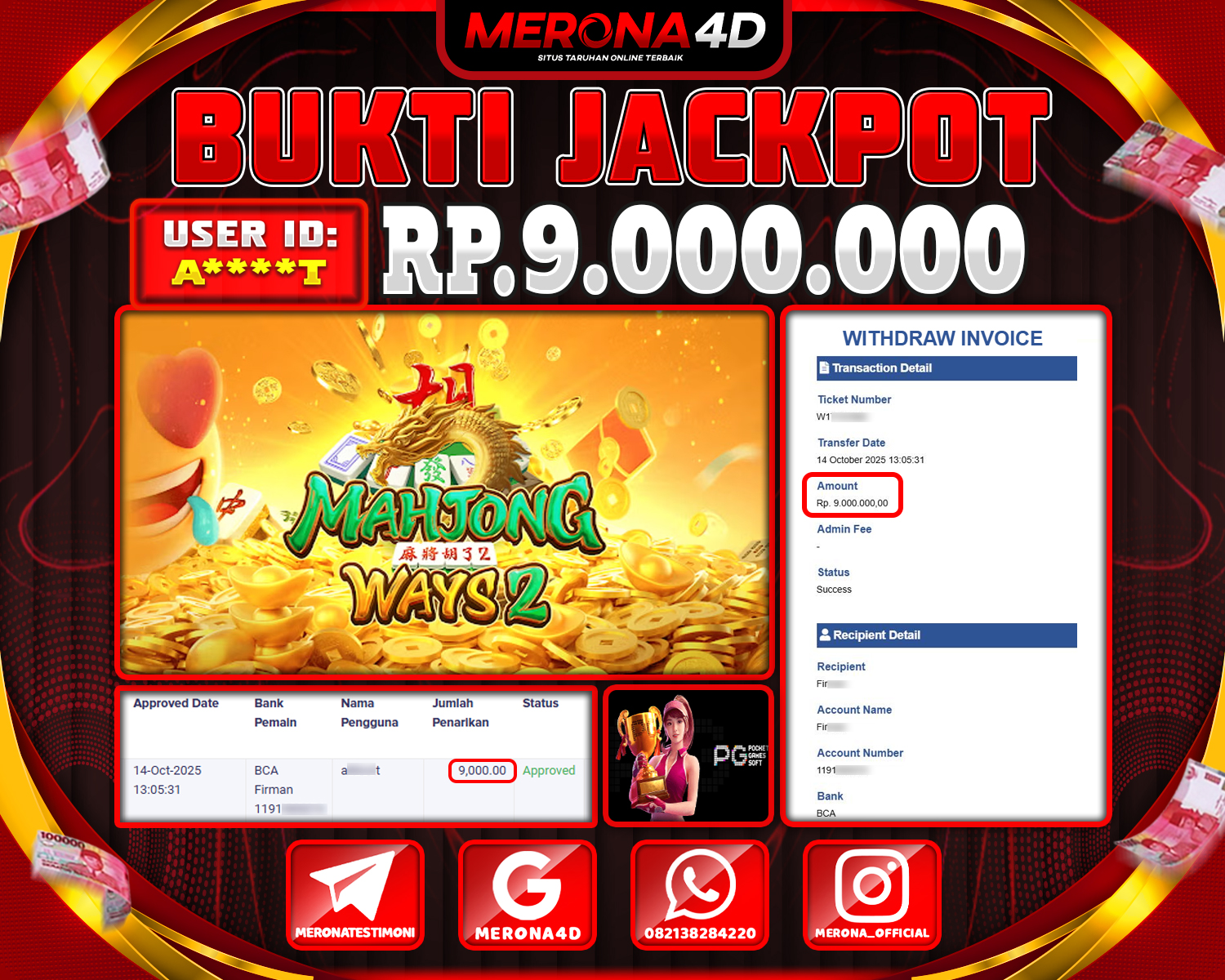 Selamat Kepada Member MERONA4D P****N Telah Jackpot Di MAHJONG WAYS