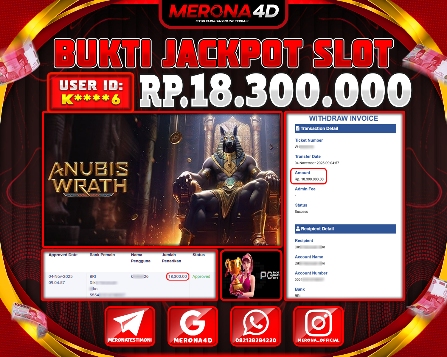 Selamat Kepada Member MERONA4D K*****6 Telah Jackpot Di ANUBIS WRATH