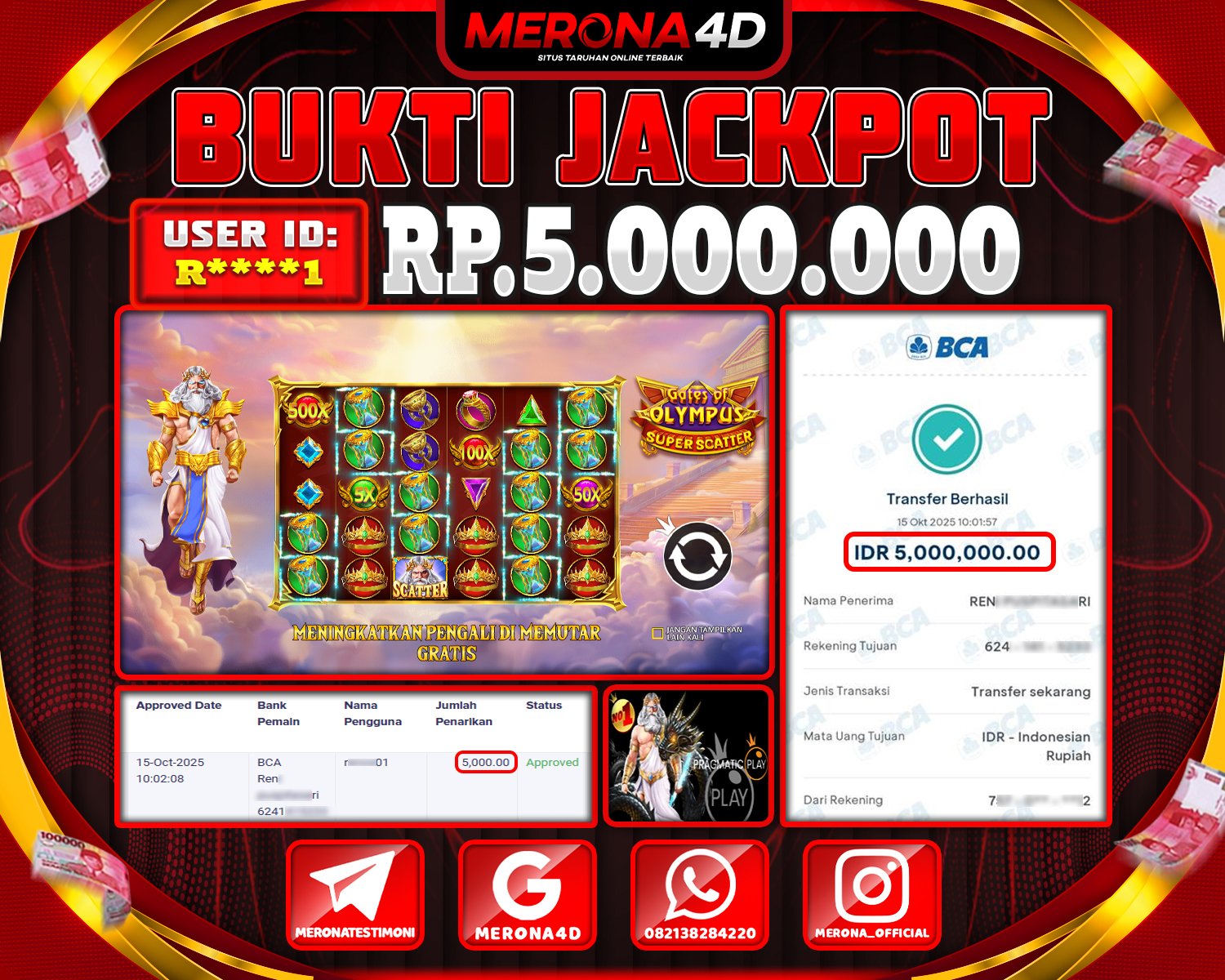Selamat Kepada Member MERONA4D Rβ­‘οΏ½***οΏ½β­‘1 Telah Jackpot Di GATES OF OLYMPUS SUPER SCATTER