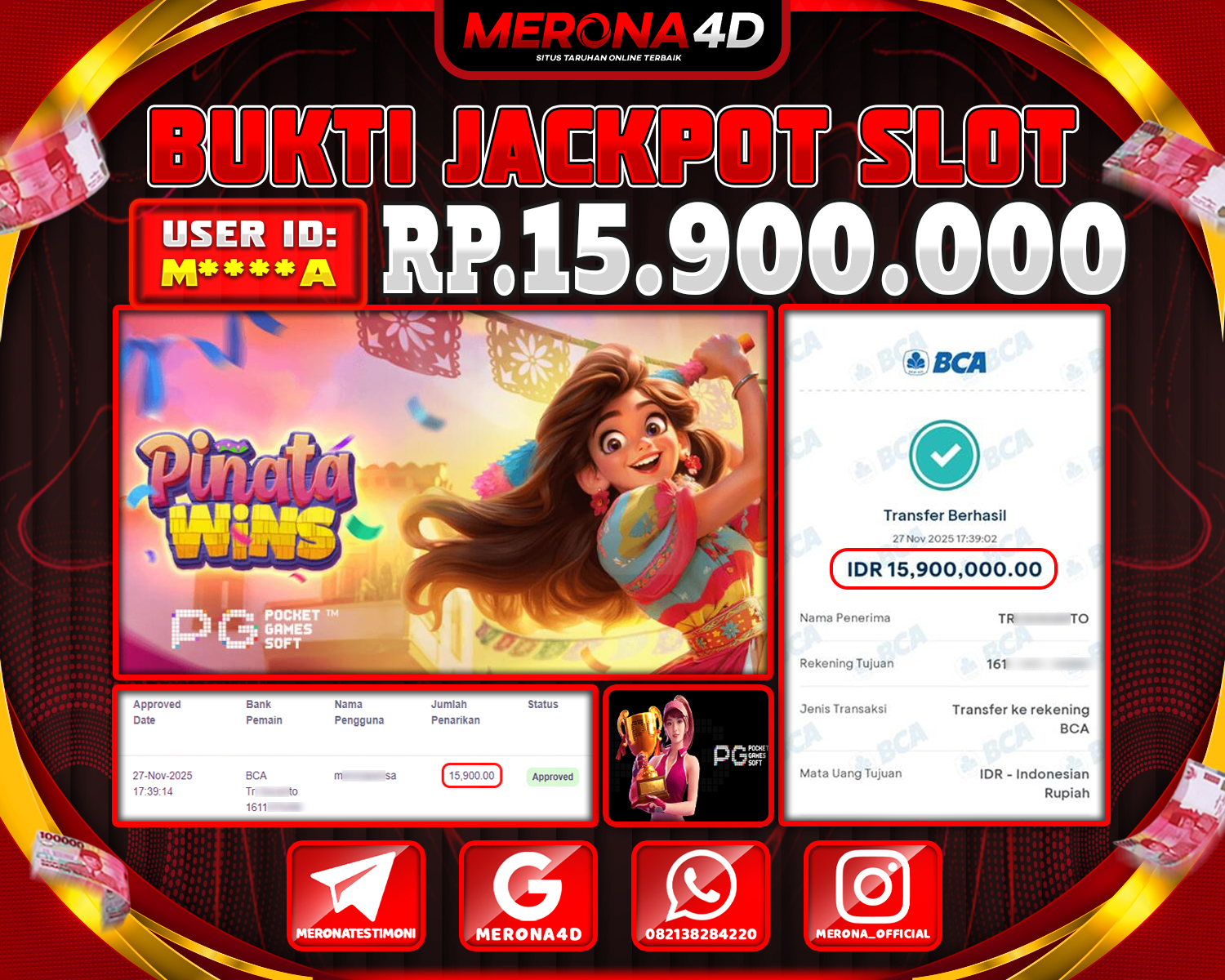 Selamat Kepada Member MERONA4D M****A Telah Jackpot Di PINATA WINS