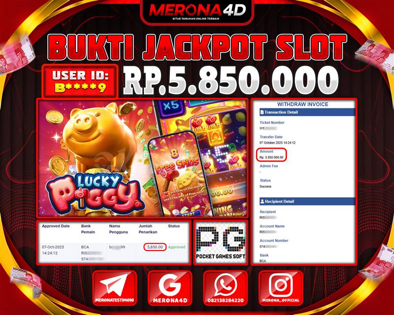 Selamat Kepada Member MERONA4D B****9 Telah Jackpot Di LUCKY PIGGY