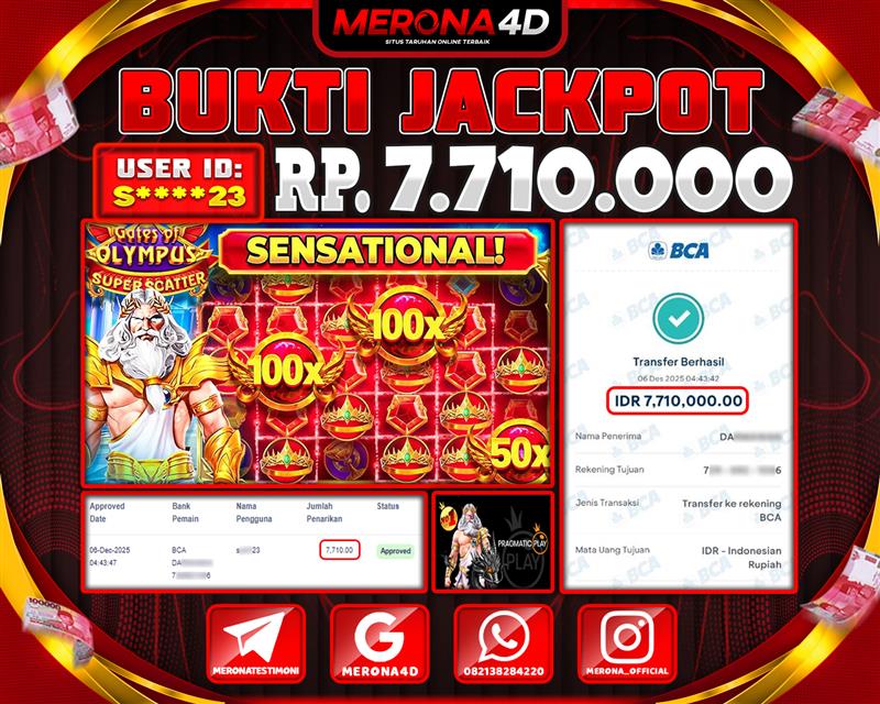 Selamat Kepada Member MERONA4D S*****3 Telah Jackpot Di GATES OF OLYMPUS SUPER SCATTER