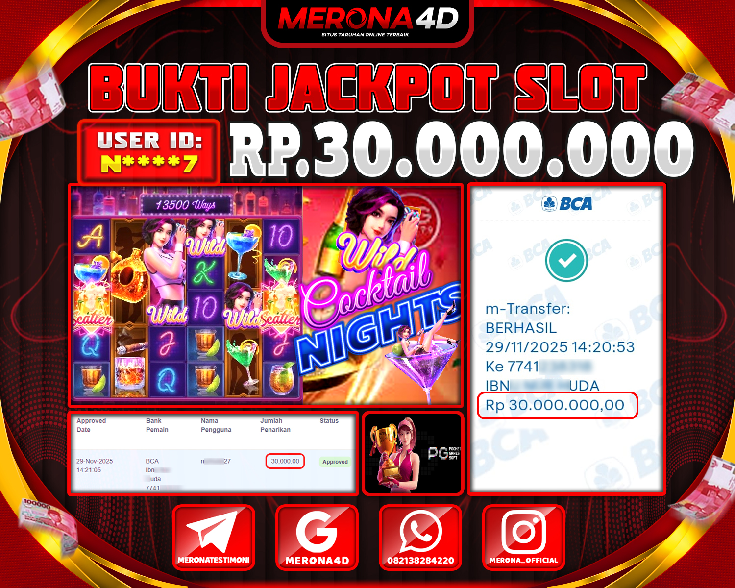 Selamat Kepada Member MERONA4D N****7 Telah Jackpot Di COCKTAIL NIGHTS