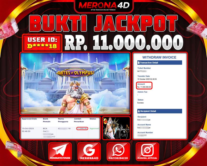 Selamat Kepada Member MERONA4D D*****18 Telah Jackpot Di GATES OF OLYMPUS
