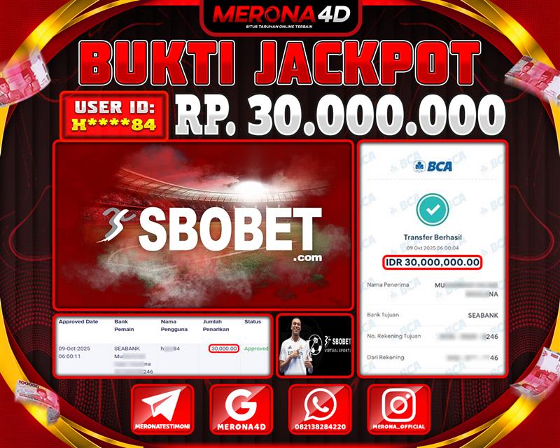 Selamat Kepada Member MERONA4D H*****84 Telah Jackpot Di SBOVIRTUALGAMES