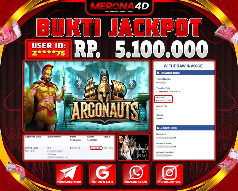 Selamat Kepada Member MERONA4D Z*****75 Telah Jackpot Di ARGONAUTS