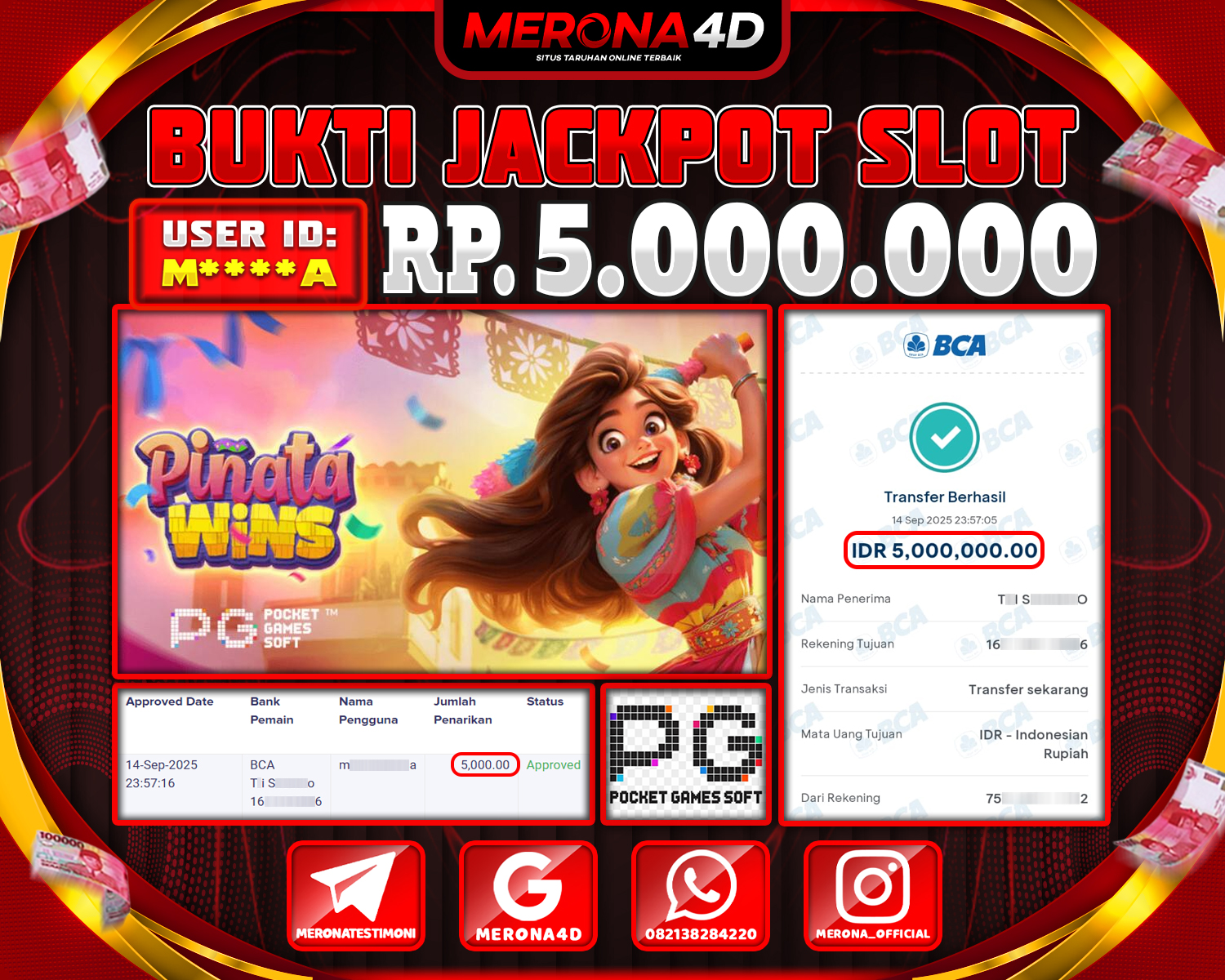 Selamat Kepada Member MERONA4D M****A Telah Jackpot Di PINATA WINS