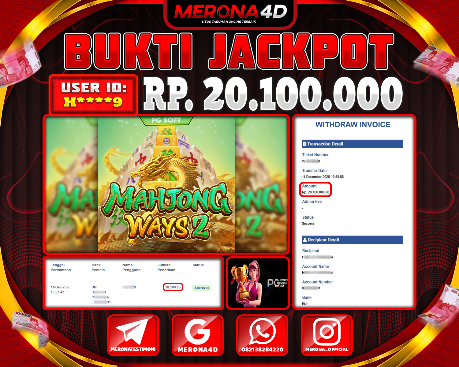 Selamat Kepada Member MERONA4D H****9 Telah Jackpot Di MAHJONG WAYS 2